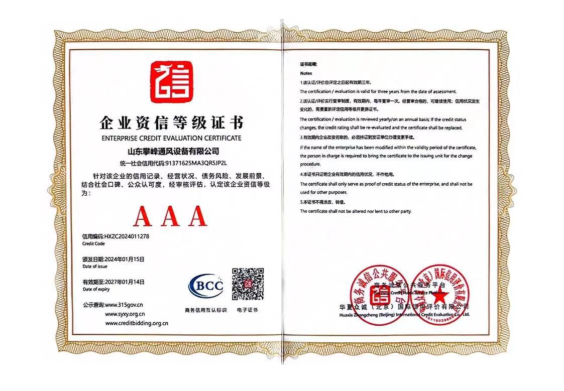 • AAA級企業等級證書